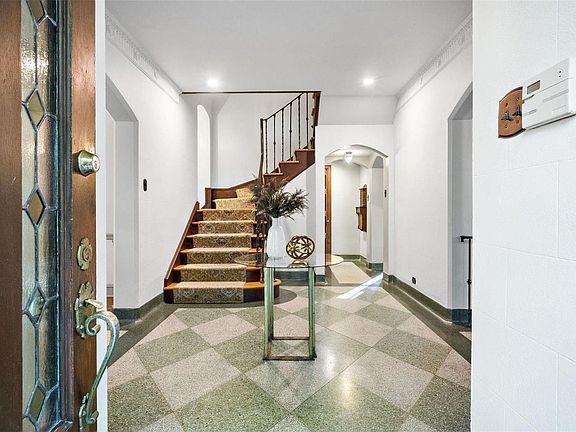 Classic center-hall Tudor in highly sought-after Claverach Park! Slate roof, elaborate masonry work, embellished doorways, & decorative moldings. Oversized front foyer, LR features a sizable gas fireplace, beautifully ornate ceiling & wood paneling. The DR has stucco walls & lead windows. An expansive eat-in kitchen renovation in 2020 incl. ice maker, SS appliances, light green granite countertops, custom cabinetry, breakfast bar & French doors that lead out to a brand new composite deck. The 1st floor additionally has a remodeled 1/2 BA, light-filled bonus room & office. Open staircase to 2nd floor w/ a primary suite- updated BA & en suite for laundry. 3 additional BRs on the 2nd floor & another full, remodeled BA. The 3rd floor was finished in 2012 & serves as a rec room/5th BR w/ a Murphy bed, full BA, oversized closet, bookshelves & skylights. The LL has a main laundry area, newer full BA & ample storage space. An oversized & level backyard complete w/ a Sport Court & lighting.