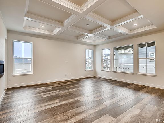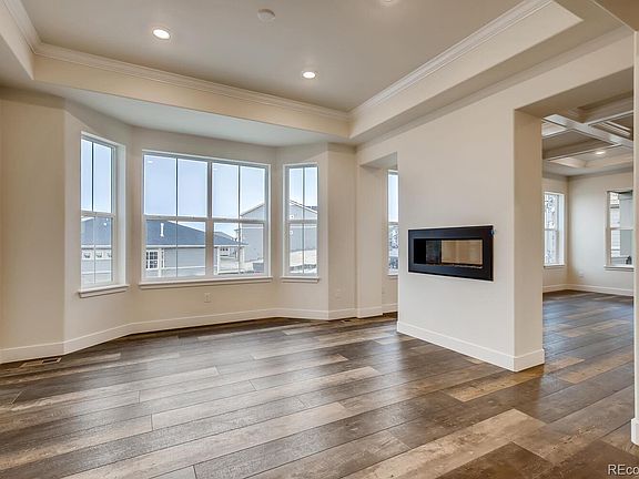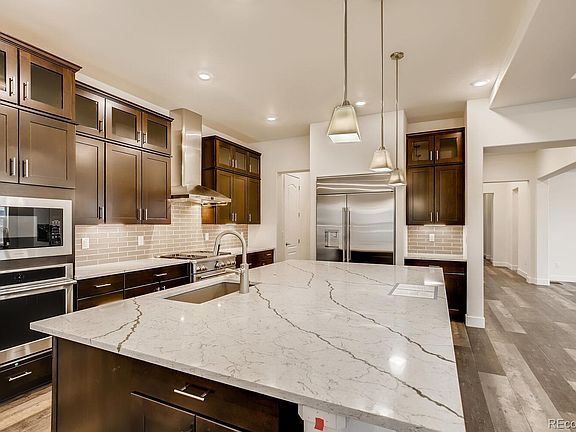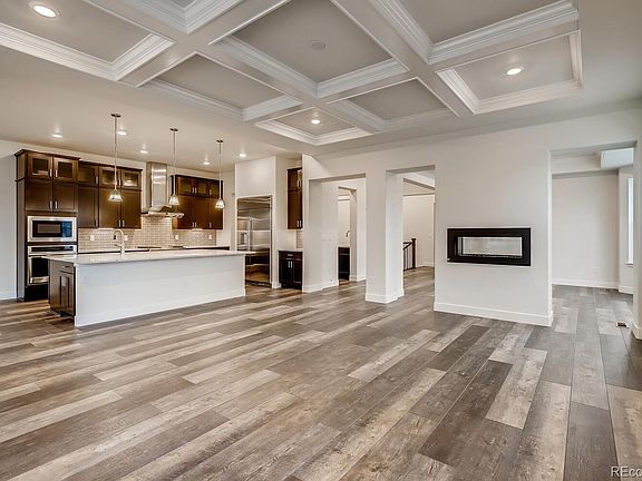 Have you been searching for THE perfect ranch home? Have you ever thought a ranch might not be for you? This is the BEST ranch (one story living) home a builder in Colorado has ever built! Step into the Trevino and you will see why right away. This expansive, light filled, and open floorplan offers convenience in every way but does not sacrifice any space you need and is on par with any luxury custom home you will find. A grand foyer greets you with a formal study with French doors that makes a perfect, private retreat. The formal dining room with bay window is connected to the kitchen via butler's pass/pantry and is great for entertaining over holidays and special events for years to come. The stunning family room features a dramatic coffered ceiling and feature fireplace. The executive chef's level kitchen boasts slab quartz counters, upgraded cabinetry and flooring, full stainless appliance package with French door fridge, and a unique floating wine/beverage bar that makes a statement and wows your guests. The master suite lives like a 5-star luxury hotel with a coffered ceiling and secluded retreat space, and a spa like bath with massive oversized shower and fantastic walk-in closet with direct laundry access. There are two additional spacious bedrooms as well, each with a private en-suite bath. The 3-car garage has additional space for a golf cart, storage, workbench, toy of your choosing... Front yard landscaping is one of the many upgrades included. You have to see this home, you won't believe how beautiful it is in person!