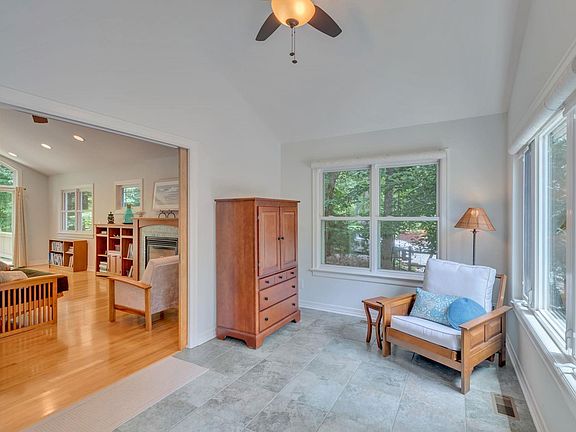 Welcome to your charming custom built home by Taylor Lyn at 42 Brougham, Lake Monticello! This delightful one-level open concept house features a light-filled tiled foyer leading to spacious living and dining areas with a vaulted ceiling. Arch-topped patio doors open to a deck overlooking private, tree-filled surroundings. The centerpiece is an arts and crafts-inspired tile gas fireplace with cherry built-in cabinetry. The custom kitchen boasts gas cooking, an island with seating space, and soft-close drawers. Light maple cabinets and a sea mist island echo the fireplace tile color. Every room enjoys ample natural light from generous windows. Oak flooring connects the spaces, while double pocket doors enhance flow. The vaulted master bedroom offers a large walk-in closet and ensuite bathroom with an oversized vanity, shower, and heated floor. Triple windows and vaulted ceilings provide views, volume, and privacy. Other features include built-in garage shelving, on-demand hot water, and a bright laundry room with tall cabinets and pantry. An upstairs bonus room with an additional 252 sqft awaits finishing touches. The deck and stone patio add outdoor relaxation options. Come enjoy this one-of-a-kind home!