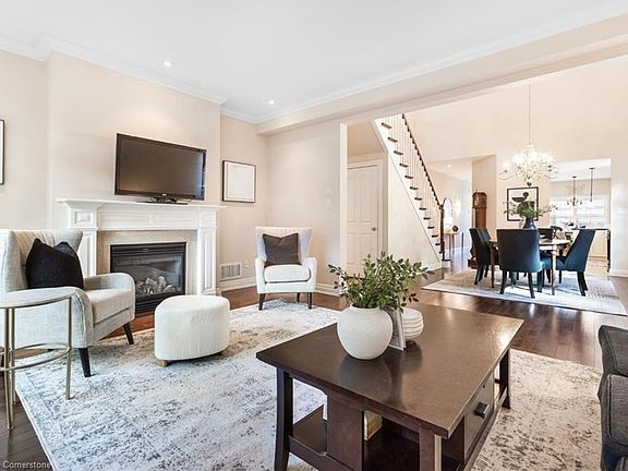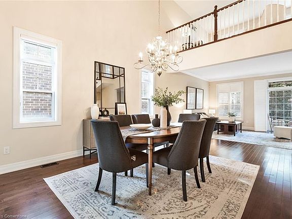 PRIVATE ROAD BUNGALOFT. DOUBLE HEIGHT DINING ROOM. STARWARD BUILT. 4 BEDROOMS w/ MAIN FLOOR PRIMARY. In sought-after Kitty Murray Woods Community of Ancaster, this stunning 4-bedroom, 2.5-bath Bungaloft sits on a quiet Private Road and offers an open-concept layout with soaring ceilings and an impressive living space, perfect for both relaxation and entertaining. The luxurious main floor primary suite boasts an ensuite bathroom and spacious walk-in closet—your own private retreat overlooking the private backyard. The chef’s kitchen and breakfast nook is a culinary delight perfect for home-cooked meals, dining in or hosting. The great room is adorned with a cozy gas fireplace, while beautiful hardwood and tile flooring flow throughout the main level, enhanced by stylish sconce & pot lights. Recent updates include a roof replacement in 2019. Conveniently placed laundry, double height dining room & serene backyard oasis round out the main level. This maintenance-free, turnkey property offers snow removal and lawn care, along with a sprinkler system, making it perfect for those desiring a hands-off lifestyle. The upper level boasts a gorgeous loft with additional 3 bedrooms & full bathroom. Unfinished basement below. Built to the Energy Star specifications for new homes, this stunning home is ready for you.