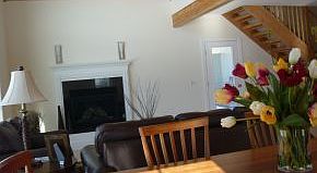 Incredible Mt. Mansfield Views! Upscale Lindal Cedar featuring separate owners` lockoff with kitchenette/bedroom/bath. Vaulted ceilings,central Air-Conditioning, exposed beams and wood trim, granite counters in custom kitchen. Full unfinished basement with egress window. One-car garage. Located just off the Mountain Road with frontage on the West Branch River, close to Stowe Rec Path and minutes to the ski lifts! HOA fees $225.