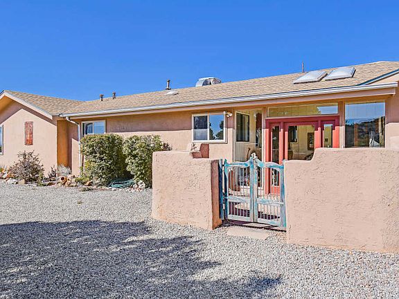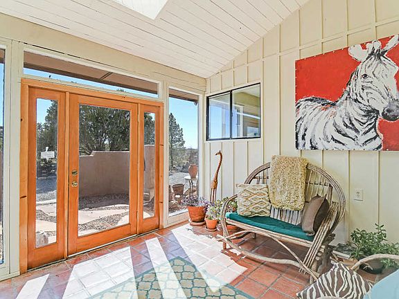 Welcome to this lovely home on a quiet street situated on over 2 acres. You'll love the Southwest style including saltillo tile floors & wood doors. This spacious kitchen features a large island with seating space for at least 6, and opens to the living area which features a pellet stove. Master bedroom is separate and has lots of natural light and renovated master bath. 3rd room makes for a great home office or spare room. Relax in the lovely sunroom or on the covered patio taking in the amazing vistas. Hot tub will convey as well. Beautifully xeriscaped low maintenance yards. Roof was replaced circa 2014. Come see this beautiful move in ready home today.