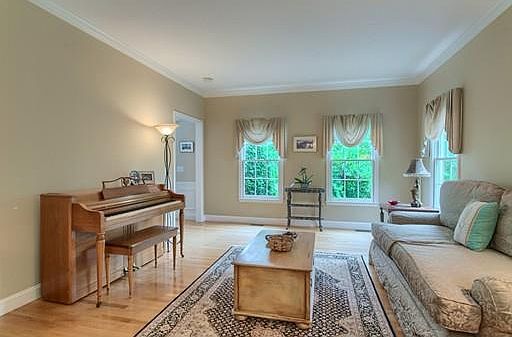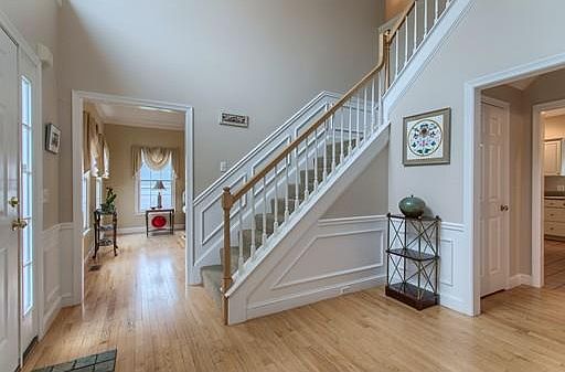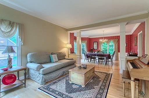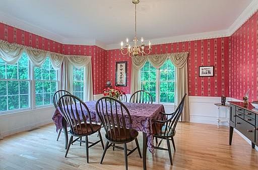 Located in the idyllic North Meadow Estates sits this well-appointed home with ample room to grow. Bright & sunny foyer w/ Palladian window, wainscoting + crown moldings welcomes you upon entering. Large living room w/ detailed columns flows directly into the sophisticated dining room w/ large bay window just perfect for gatherings & entertaining. Kitchen is expansive w/ center prep island, Corian counter-tops, slider overlooking deck & ample dining area. Kitchen flows to a sunken family room w/ fireplace. Separate private office space completes the first level. Second level floor plan is a dream! Massive master bedroom oasis w/ large walk-in closet, separate dressing area, PLUS a generous master bath w/ jetted tub, double vanities & separate shower. Each additional bedroom is ample in size one with its own full bath & two other bedrooms with a shared bath. Home is situated on a level lot surrounded by mature plantings + woods behind. Showings begin at OH Sunday 12-2pm.