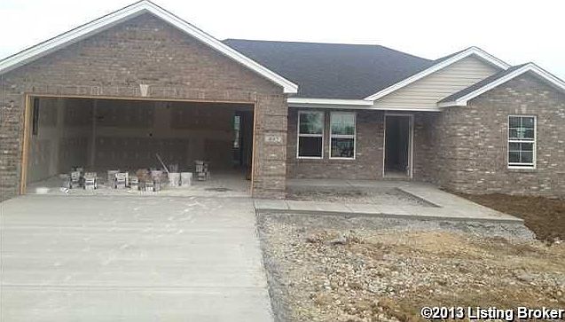 1 ACRE LOT 1300sq/ft 3 Bed 2 Bath home with 2 car garage under $145,000!!!! Home under construction. Estimated completion is 6/3/2013. Open floor plan, 10 ft ceilings in living room, laminate hardwood flooring, treyed ceilings, master suite, patio, appliances included, 1 yr home warranty, double wide concrete driveway, and did I mention 1 ACRE lot. Only minutes from I65, Zappo's, Heritage Hill Golf Course. Great pricing for a new home on 1 acre.