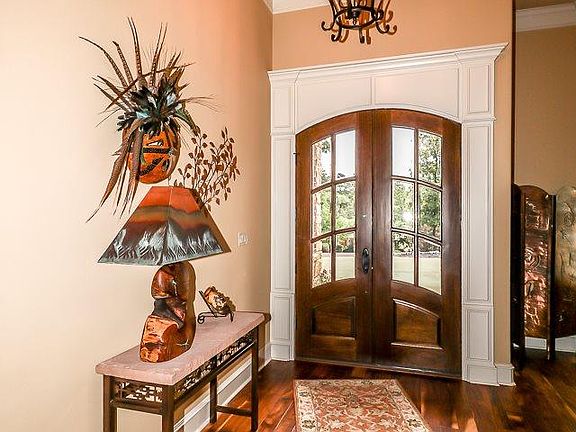 Custom built all brick home in a desirable East End neighborhood with numerous upgrades. Open the front door to beautiful Walnut Hand Scraped wood floors and soaring 12' ceilings in an open plan perfect for entertaining. Floor to ceiling stone fireplace w/remote. Front guest br has built in desk area & craft counter in laundry area. Walls of windows lead to the covered patio and flagstone patio with built in grilling area. Third bay of garage w/split air currently workshop. Walk up to storage over garage.