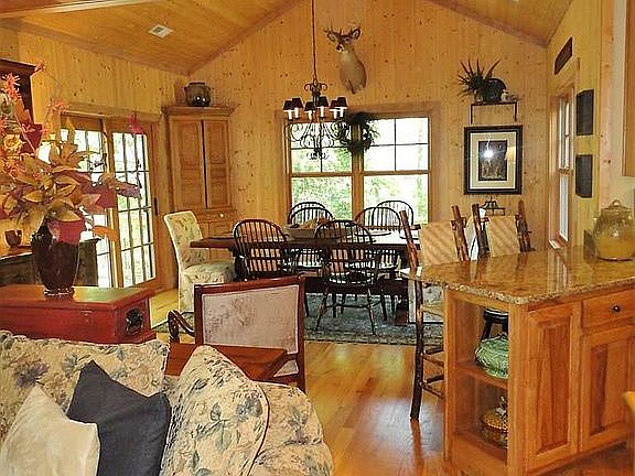 Perfect Vacation Home is a "preferred rental home" for a reason. Convenient location is another plus for this charming 3 bedroom 3 bath hideaway in the Trillium Ridge community on a large 0.64 acre lot. Idea floor plan features a large stone fireplace open living area with kitchen dining area and master bedroom on main, and a great family room, wet bar and two full bedrooms/baths on the lower level. Generous porches, open and covered, plus a private golf cart barn next door. Steps from the 14th green, this property also backs up to Norton Creek. A view to the primitive creek could easily be cleared to enhance the ambiance of this well-built home. If desired, this home could provide an income stream through a rental program. The fortunate new owners of this home will have found a true treasure. NO MEMBERSHIP REQUIRED, but, at the buyers' option, a generational club membership can be purchased for an additional price.