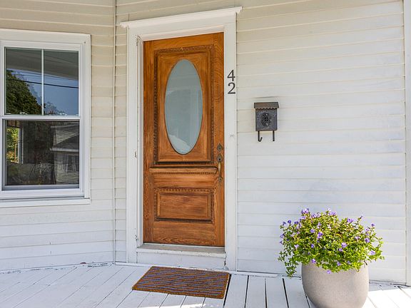 Beautiful and bright New Englander in great South Portland location. 42 Carter Street has been tastefully and lovingly updated over the years and is ready for its next owner. From the inviting front porch enter through the beautiful, wood door and you are immediately struck by the period charm of the woodwork and columns in the foyer. The sunny living room has original stained glass and plenty of room for friends and family to gather. Although the home is over 100 years old the open concept layout from the dining room to the kitchen is perfect for gatherings of all sizes. An updated kitchen is always on the list of ''wants'' and this home delivers. The modern, but also timeless, kitchen has white cabinets, butcher block countertops, stainless steel appliances and floating shelves. Upstairs are three generously sized bedrooms and a bathroom with new penny round tile and a new vanity. Unlock the potential of a spacious unfinished walk-up attic, offering a blank canvas for your creative vision. The open space allows for versatile design options, catering to your specific needs—think home office, playroom, guest suite, or a stunning primary retreat. In the meantime, there is a finished space in the basement that can be used in a myriad of different ways. One of the greatest highlights of the house is the backyard. Coming in and out from the yard during all seasons was made much more enjoyable by the large mudroom, with a half bath and wood stove. The oversized lot provides a perfect place to unwind after a days work. With beautiful hardscaping and mature plantings you'll never want to leave. 42 Carter is truly move in and ready and will make the stressful task of moving a joy!