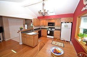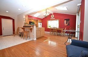 Immaculate and extremely well maintained one owner Ranch featuring hardwood floors throughout, gorgeous eat-in kitchen addition with breakfast bar, bay window, vaulted ceiling with skylights, and new slider out to deck, open to sitting area and mudroom, large living room with picture window, full finished basement with potential 4th bedroom, full bath/laundry room, large family, 2 offices, and walk out to patio and in ground pool overlooking private yard on over .66 acre lot in great neighborhood at the end of a quiet cul-de-sac. All updated vinyl windows, 5 year old roof, and central AC.