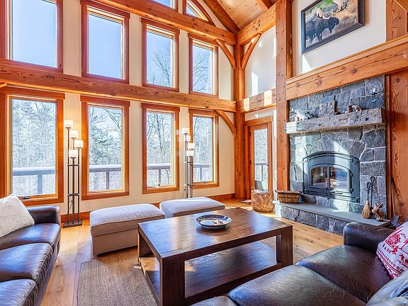 Welcome to your dream home in Okemo Pines! This timber frame residence is a true gem, offering a perfect blend of luxury and comfort. With four bedrooms and three and a half baths, this home is designed with your lifestyle in mind. The open-concept main features beautiful white oak floors and bonus rooms that can easily adapt to your specific needs whether it's a home office or an extra den. The heart of this home lies in the great room, where a cathedral ceiling and ample windows frame breathtaking views of the surrounding landscape. Relax on a chilly day, cozied up by the fieldstone fireplace, creating memories with loved ones. For the culinary enthusiast, the spacious kitchen is a masterpiece. Adorned with a farmer's sink, custom cherry cabinetry, and a walk-in pantry, it's a chef's delight. The main level boasts a luxurious primary suite with a walk-in closet for added convenience. Venture upstairs to discover two additional bedrooms, each offering its unique charm. The layout provides privacy and space for everyone in the family or guests. On the lower level of the home, you will find the fourth bedroom, full bathroom, kitchenette, den, and an open and sunny game room, currently being used as a billiards room. No need to worry about parking the attached two-car garage ensures convenience on any day. The location of this home is truly remarkable a serene retreat that feels tucked away, yet just a minute's drive to downtown and the base of Okemo.