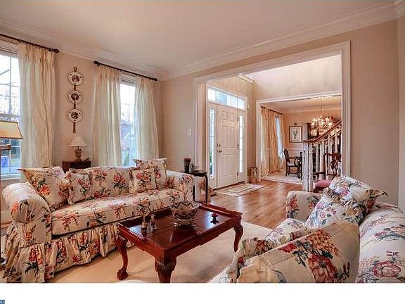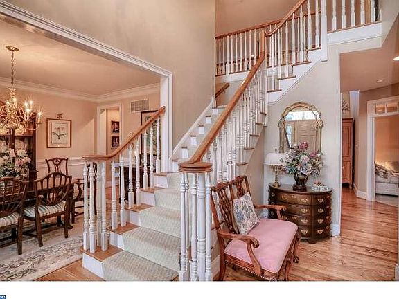 Impeccable home in the sought after Community of the Brinton Estates at Cherry Creek. Level lot backing to the woods with easy access to the community walking trail and open space.~ Open floor plan with kitchen,~eating area,~and family room with fireplace (all with hard wood flooring) overlooking the Trex deck and wooded rear lot. This Penn model includes the expanded spacious kitchen with added cabinetry, counter space, and upgraded island, that rivals the largest models. Site finished oak floors continue throughout most of this level, including the formal living and dining rooms. A separate study and large mud room complete the first floor, as this original owner opted for the upgraded second floor laundry. The oversized~master suite includes a~separate~sitting room, walk-in closets~and an elegant 4 piece tiled master bath. 3 great sized additional bedrooms and a tiled hall bath with a double vanity complete the second floor. Upgraded trim and lighting fixtures, along with it's pristine condition, give this home a "model like" feel.~