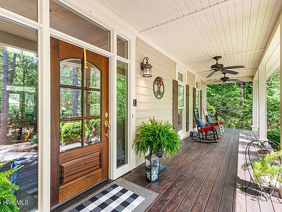 home offers the perfect blend of comfort and elegance, ideal for both entertaining and everyday living. Step inside to discover generous 10-foot ceilings and stunning hardwood floors throughout the main level, including the primary suite. Upstairs, neutral carpeting adds warmth and comfort to the guest bedrooms. The inviting living room features a gas fireplace and an open two-story design that fills the space with natural light. This home boasts four private en-suite bedrooms, offering personal space for everyone. One of the upstairs bedrooms even has its own staircase off the kitchen and dining area—ideal for guests or multi-generational living. Enjoy quiet moments in the cozy library overlooking the charming rocking chair front porch, or unwind with a beverage on the serene screened back porch. Mature landscaping surrounds the property, offering seasonal beauty and landscape lighting. The fenced backyard features a stone patio perfect for casual dining and entertaining.