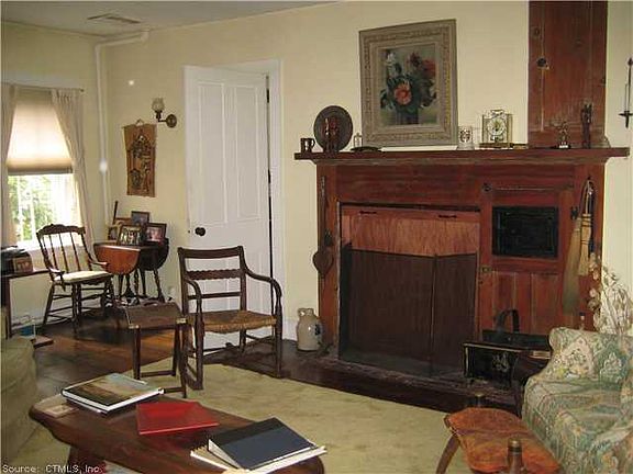 Charming Cape in the Woodstock Hill Historic District. Big kitchen with walk in pantry, sliders to the private patio with a view to the northeast. Family room has fireplace with Dutch oven and Parson's closet. Big barn, and a trail through the woods.