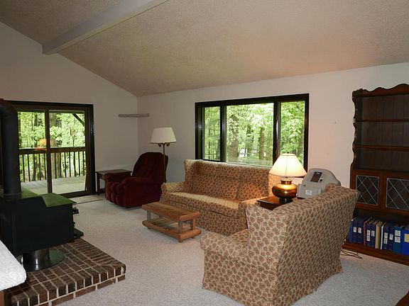 Price reduced! Move into this meticulously maintained 3 BR, 2.5 BA modern beauty, sunken LR w/ vaulted ceiling & woodstove & built-ins, eat-in kitchen w/nook, 1st fl bedrooms & laundry, heat pump w/AC, newer roof & septic, almost an acre, fin LL family rm w/wet bar & 1/2 bath, covered deck oversized 2 car gar w/storage above, private, mature landscaping, 5 min to 80 & 81. Selling ''as is''.