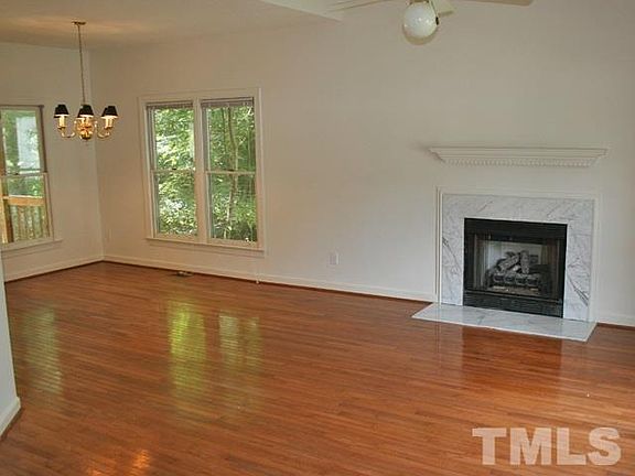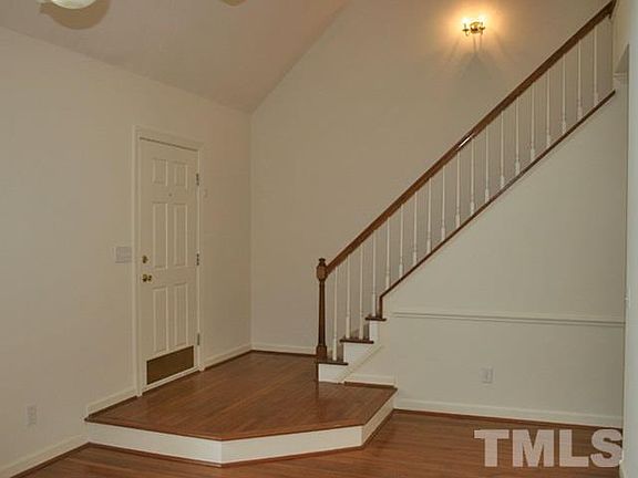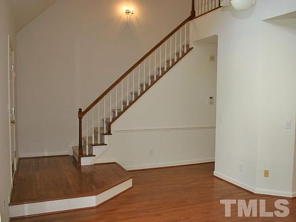 Affordable end unit townhome located minutes from parks, shopping, RTP, and all that the area has to offer. The home boasts a large deck and screened porch with view of the private wooded area maintained by the HOA. The interior has many windows filling the space with natural light. Family room, kitchen and dining room adjoin for ease of entertaining. Upstairs you will find 2 bedrooms, each with an en suite bath. The HVAC system was recently replaced. HOA dues cover exterior maintenance and yard work.