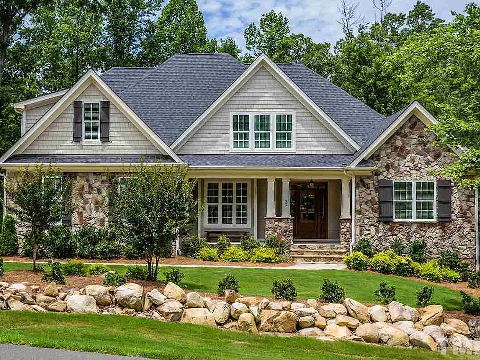Over 2000sqft of unfinished basement to finish how you choose! GORGEOUS custom home in Fieldstone! Situated on 2+ acres that backs up to woods. Open concept features kitchen with stainless appliances and granite counters. Master and guest bedroom on main, plus two additional bedrooms & large bonus room upstairs. Other features include double decks off of the back, two-sided fireplace for use in family room and screened porch, site-finished hardwoods, and 2nd floor storage. Easy drive to UNC, RDU, RTP.
