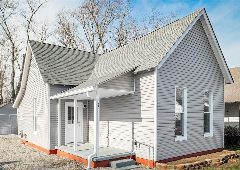 This one deserves a look! Completely renovated down to the studs. Updates made in 2022 include roof, windows, HVAC, some wiring, vinyl siding, gutters, insulation, interior doors, kitchen cabinets, oven/range, flooring, drywall, bathroom cabinets and fixtures, blinds, fresh paint. New kitchen countertops are ordered and scheduled for installation in mid-January (sample located in kitchen). Large utility room with new water heater and hookups for washer/dryer. Off-street parking with 1-car detached garage in rear of home. New gravel on driveway.