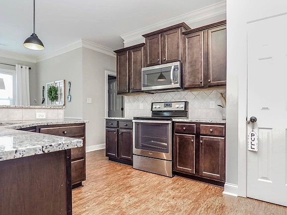 Welcome to your better than new home in Kyndal Subdivision, a swim community! So many details make this one stand out from the crowd. Crown molding throughout most of first floor, board and batten molding in breakfast and dining. Upgraded lighting throughout. Granite counters, tile backsplash, walk in pantry. Laminate flooring in most of downstairs area. Huge upstairs guest suite and bonus room. Storage galore with walk in closets in each bedroom and in bonus room. Flat, fenced yard with screened porch.
