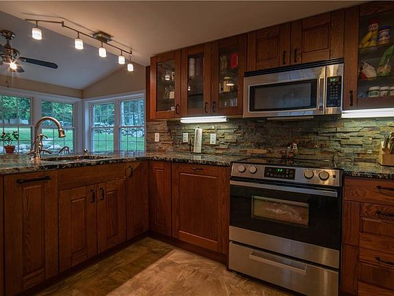 WELCOME HOME This Beautiful Cape was completely remodeled from the studs in 2013. Fully permitted remodel, every window, plumbing and electric (now 200 amp were replaced. New roof, hardwood floor, carpet in the bedrooms, vinyl siding and foam insulation were included in this remodel Entering from the covered porch, into the beautiful eat-in kitchen with granite counters and stainless appliances. Through to the living room is a stone fireplace with a wood pellet insert and french doors out to the covered porch. The first floor bedroom can be used as an office and is adjacent to the bathroom. Upstairs are two additional bedrooms. The large yard is great for relaxing and entertaining