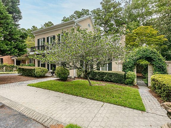 A distinctive 2 story stucco home with European charm, custom-built and designed by Brad Bennett, is nestled in the peaceful and picturesque Conifer Place subdivision. Open the front door to find reclaimed heart pine floors leading to a formal dining room with grand chandelier and living area with lovely fireplace detail. The kitchen features plenty of counter space, two pantries, and a new fridge and range-top. Explore further to find a Mexican tiled great room with a skylight as well as an oak wood floor den with built in shelving, each with views of the courtyard. The main level master suite has double vanity tub, and separate shower attached to a sizeable laundry room with exterior access. Upstairs find 2 more bedrooms with attached bathroom and attic storage access. Perhaps the most charming feature of this home is its private walled courtyard with wrought iron gates creating a romantic outdoor living space. Don't miss out on this home's distinguishable and timeless features!