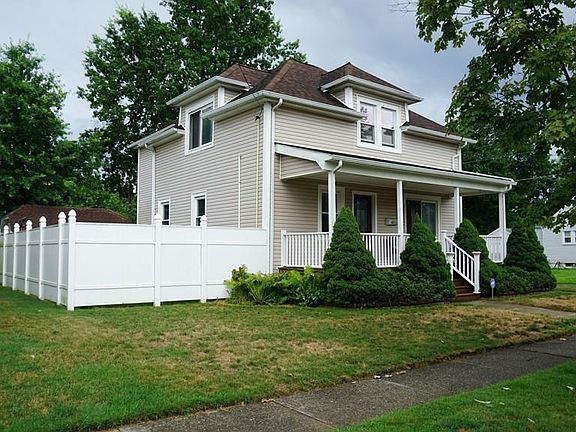 Quality craftsmanship abounds in this 6 room, 3 bedroom, 2 full bath Colonial with open floor plan in move-in condition. Interior highlights include lots of hardwood flooring, a remodeled kitchen with breakfast bar and stainless steel appliances, a large dining room, and spacious living room with stone fireplace, recessed lighting, and tray ceiling. The 2nd floor has a sitting area at the top of the stairs, 3 good-sized bedrooms with hw floors (master has a walk-in closet), and a full bathroom with an extra-large tub and tile surround. The basement is a hidden gem, and sports a full bath, sauna, small office with a safe, cozy nook with built-in knotty-pine bench, and lots of shelving. Exterior highlights include a corner lot, a front porch, a detached 1-car garage, a fenced back yard, sprinklers, and a newer roof. Other pluses include vinyl-siding, replacement windows, upgraded electric, and a newer boiler. If you're looking for quality and style, this is a must-see.