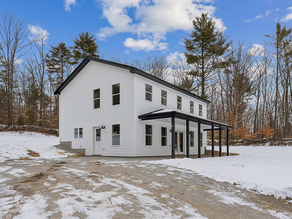 NEW BUILD. You will want to see this Farmhouse Colonial boasting an open floor plan, abundant cabinetry, granite counter-tops, high ceilings, recessed light, radiant heat, a large pantry, inviting Great Room, bright sunny rooms, large bathroom with laundry hook-ups, and a laundry shoot, all on the first floor. The second floors offers two extra large bedrooms, and one full bath, additionally the primary suite offers abundant windows, a huge walk in closet and an en suite bath with a walk-in shower. The surveyed lot is 1.87 acres, a drilled well, private septic, lovely sunset and sunrise views, stonewalls, and a Farmer's porch that is waiting for your rocking chair. Hardscaped entries. Schedule a viewing today!