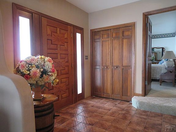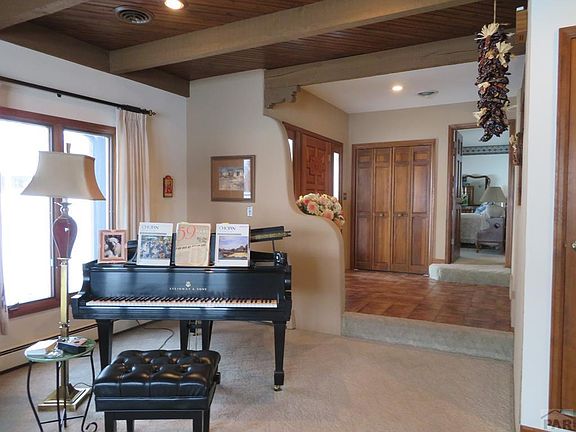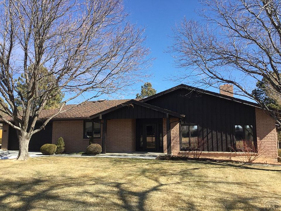 Fabulous ranch-style townhome in a perfect Country Club golf course location. The southern exposure views are wonderful! This open floor plan home is light-filled with attractively decorated spacious rooms. You'll love the soaring lattia ceiling, clerestory windows in the vaulted family room & kitchen, the gas log two-way fireplace between the living and family rooms. The kitchen is a dream to work in as it opens to the family room, has counter seating to visit with the chef and has a lot of storage. Master bedroom is huge, has a 5 piece bath and large walk in closet and a delightfully private patio area. The second bedroom is also nice size with a walk in closet and secondary closet. Guest bath is spacious and also contains the laundry which can be closed off. You'll never worry about having enough storage when you see the full basement. There is a stairlift for those needing assistance with stairs, an office with built-in desk and work area, a large file closet, the 3rd bedroom which is non-conforming (no window) and a 3/4 bath. There is a large cedar closet and two additional work/store rooms; one lined with shelving and the other with a work bench. The boiler for hot water heat is only 2 years old. There is also central air conditioning and an attic fan--the best of all worlds! The exterior doors were crafted in Santa Fe, decorative bars from the Mancos jail and light fixtures from the Whitman hotel! The hand crafted unit beside the fireplace stays.