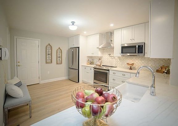 • Features: Flooring - Vinyl, Countertops - Stone/Granite/Solid, Open Floorplan, Recessed Lighting, Remodeled, Stainless Steel Appliances, Pot Filler Faucet, Peninsula, Lighting - Overhead
