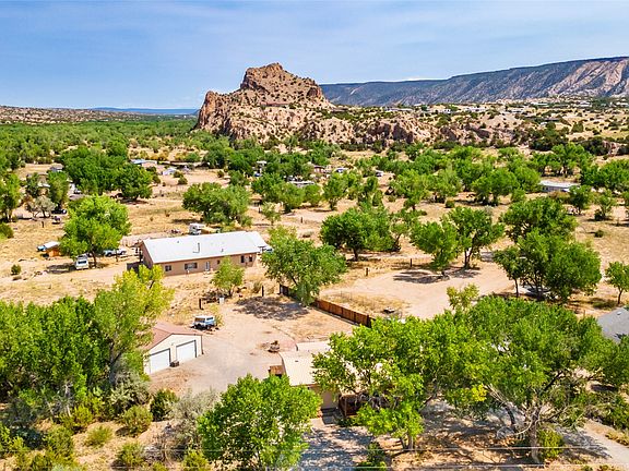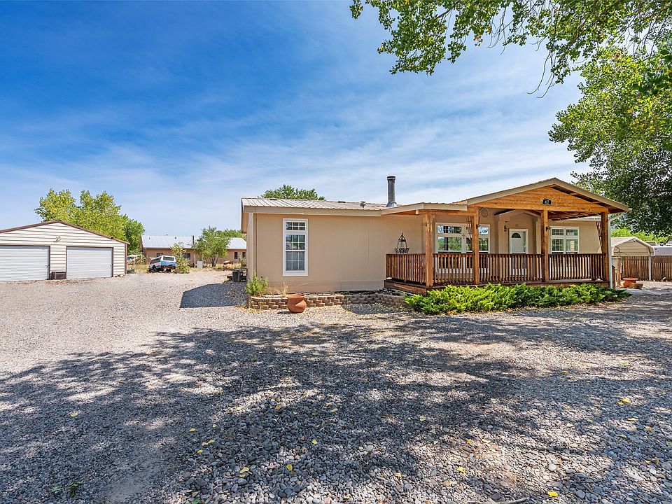 This manufactured home on 1.35 acres is now for sale! It sits in the Monte De Luz subdivision. Has a nice layout inside with a good sized master bedroom and a large master bathroom on one side of the house. The other two bedrooms and bathroom sit on the other side of the home with an office cubby in the hall. Decks extend off both the front and back doors of the home. There is a large metal four car garage on the property as well as a 400 sq ft car port. Beautiful views and a short drive to Espanola, Santa Fe, or Los Alamos.