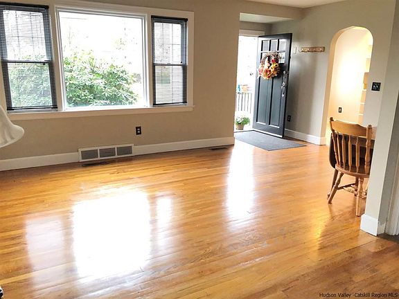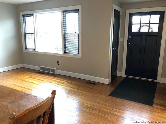 This Classic Brick Cape is located on a quiet tree lined street in the City of Kingston and is walkable to the Historic Uptown Kingston Stockade area offering a weekly farmers market along with great shops and restaurants. This home has some nice original mid century details in the Kitchen and has also been updated making it move in ready. There are hardwood floors, insulated windows and doors along with new stainless appliances and new flooring in the kitchen. A sunny Kitchen nook is a great place to have breakfast with a large window overlooking the front yard. The bathroom of this home has been updated as well. There is a first floor bedroom making it easy to live on one level if you wish. The second story has another comfortable bedroom and a den area. Both with skylights. There is a full basement and plenty of closet storage too including a walk in closet on the second level. The dining room has access to a nice sized deck and yard. And here is the bonus. You have an extra side lot for gardening and play. Wow !! The attached garage completes the package for this home. Located just 1.5 hours out of NYC with buses running all day long back and forth from right uptown. The NYS Thruway is also right up the road. Be a part of this great small City with so much to offer and plenty of energy. An Historic Downtown Waterfront, art and culture, rail trails and the start of newly installed bike lanes. All as part of the Kingston Greenline.