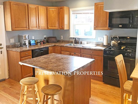 ly PET FRIENDLY Huge 1 BR in a two family home with bay windows in the living room, nice sized bedroom, hardwood flooring throughout and an all new bath. Eat in kitchen is not new, but is a nice cooking and dining area with good counter space. It has laundry hook ups in the basement (previous tenant's machines may be there in 'as is' condition), along with some storage, and there are two parking spots out back (not tandem, but side to side)