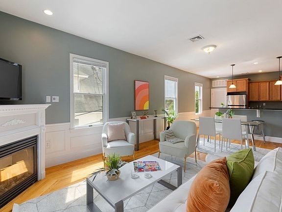 Gorgeous, modern and bright condominium located in a superb setting in coveted Spring Hill, across the street from the green Dickerman Playground. With the perfect layout, flow and ample volume, this spacious home offers high ceilings, an open living/dining area, a contemporary kitchen, gleaming hardwood floors, 2 bedrooms and 2 full bathrooms. Additional features include central air conditioning, double fireplaces, a generous master walk-in closet, in-unit laundry, a rear deck, ample storage in basement and deeded parking in the heated driveway. Near fine restaurants, shops, schools, parks, top universities, the Porter Square T station, mall, and all that Somerville and Cambridge have to offer. Simply beautiful and convenient.