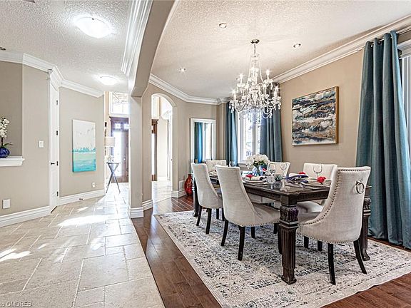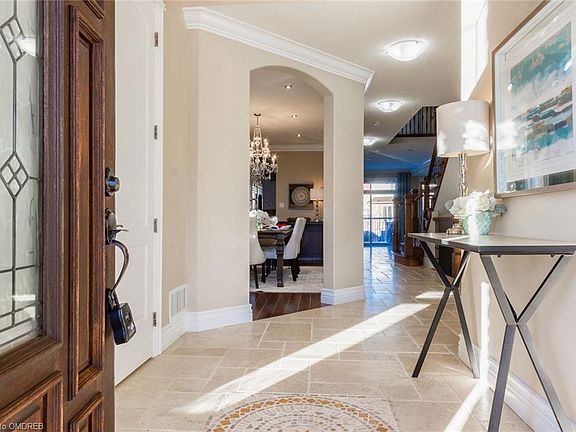 Stunning, extensively upgraded, custom-built home located on a quiet, family-friendly street in desirable Doon South neighbourhood of Kitchener. Grand entrance foyer windows fill the main floor with natural light. Less than 5min to the 401, Conestoga College and Grand River. This executive home features 9ft ceilings, crown moulding throughout. In the kitchen the upgrades include trash compactor, double ovens, wine fridge, and custom-built cooking space with induction stovetop, pot filler and slide-out spice racks. Upgraded cabinetry with dental moulding showcase the attention to detail in the home. 4 large bedrooms ALL with spacious walk-in closets. Master bedroom with double-sided fireplace that connects with luxurious ensuite bathroom with his/hers sinks and jacuzzi bathtub & separate shower. One of the oversized bedrooms has spectacular windows & vaulted ceiling and can easily be used as a family room or den. Main floor office complete with cozy, double-sided fireplace (connects with living room). Main floor laundry / mud room. Laundry chute from 2nd floor bathroom to laundry room. Tons of storage throughout the house. Central Vac.