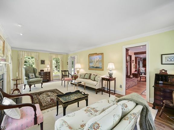 Sublime Bernardsville Colonial at Tower Mountain Bernardsville's established Tower Mountain neighborhood, one of the area's most popular enclaves, is a sought-after backdrop for a gracious Colonial on 1.24 landscaped acres. This welcoming four bedroom, three full and two half bath residence is located on a cul de sac and features extensive mature plantings, a huge brick terrace, glass-enclosed porch and private rear yard. The leafy setting is just minutes from downtown shops, restaurants, schools, commuter highways and Midtown Direct trains. Beautifully maintained by the present owners, pride of ownership is seen throughout this sophisticated home which offers a new 2020 septic system. Highlights of the welcoming layout include generously-sized rooms, hardwood floors, crown moldings, two fireplaces, recessed lighting, built-ins, a wet bar, skylights, a gourmet kitchen, private master suite and finished space in the daylight lower level. The graceful architecture is enhanced by a landscaped front walkway and traditional front door edged in sidelights and Colonial trim. Introducing the floor plan is a wide foyer featuring a turned staircase, chandelier, hardwood floors and views into some of the main gathering areas. Special occasions are memorable in the dining room fitted with crown and chair rail moldings, wainscoting and two built-in china cabinets. In the spacious, sunlit living room, a white mantled fireplace and crown moldings are elegant details. The living room connects to a bright, airy family room warmed by the glow of a raised hearth brick fireplace edged in wood paneling and custom cabinetry. This vaulted ceiling space has two skylights, an airy ceiling fan and recessed lighting. Chef-worthy appointments in the kitchen include a center island with Dacor gas cooktop, an oversized stainless steel Sub-Zero refrigerator/freezer, full-sized Sub-Zero wine cooler, Fisher-Paykel dishwasher, double wall ovens, granite countertops and hardwood floors. The adjacent dining area contains a wet bar and sliding French door to the screened-in porch topped by a glass ceiling with two ceiling fans. This indoor-outdoor room overlooks an expansive brick terrace providing serene views of the property. Completing the first floor are formal and informal powder rooms and a mud room with a door to the outside. Upstairs, a soothing master suite lined in crown and chair rail moldings connects to a private master bath. Spacious secondary bedrooms share two more updated baths on this level, which also accesses a walk-up storage attic. Additional living space is found in the partially finished lower level fitted with new Berber-style carpeting. Storage needs are easily met in the attached two-car garage. The desirable Tower Mountain neighborhood enjoys natural views from roomy lots along low-traffic streets. Residents here can often be seen bike riding, walking or jogging along the gently winding streets lined with impressive residences. This updated Colonial is an exceptional offering in the prime Somerset Hills. It is close to Bedwell Elementary School, Bernardsville Middle School and the municipal park with its tennis courts and polo grounds.