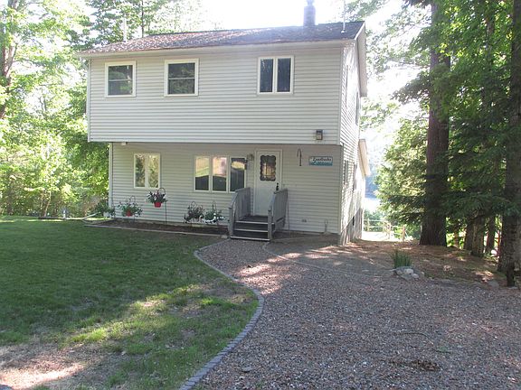 Year round home on a private road with lakefront rights. Can it get any better? Step inside to the eat-in kitchen and living room. Go downstairs to the very large daylight basement that can be used as a family room, man cave, or sun room. This level goes outside to a terraced lawn with breath-taking view of the lake. Ideal for sunbathing and watching the sunsets! Upstairs features 3 bedrooms with closets, plus a large walk-in closet, and full bath. Large 2 car garage, with storage and there is more, a community beach located a short walk away to enjoy swimming and boating in the summer and snowmobiling and ice fishing in the winter. Enjoy all seasons in this wonderful home.