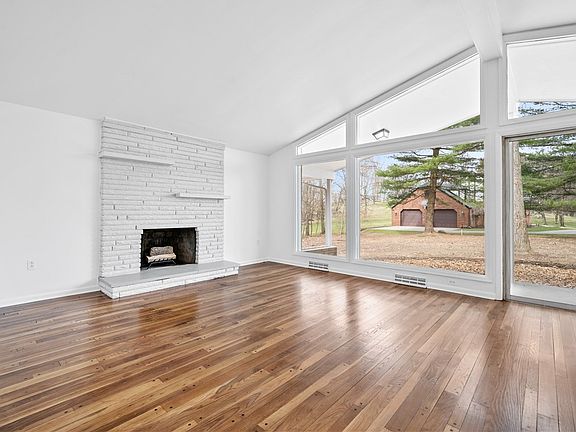 Tucked away on a quiet, tree-lined private lane this mid-century modern ranch features a stunning wall of glass & open, airy feeling Natural slate foyer leads you to Great Room w real oak/hardwood floor Stone/log burning FP Cathedral Ceilings Inviting covered patio off of Great Rm Spacious bedrooms Ceramic full bath & half bath in lower level Estate has finished many renovations-refinished floors, baths, updating kitchen w new counters, appliances, flooring, fresh painting thru out, new heat pump/furnace, new L-shaped game room w LED lights, new 1500 gallon septic tank, new concrete walkway, new stone driveway & three off street parking spaces, new garage door & exterior doors, beautiful landscaping, new electric panel, light fixtures-plugs-switches throughout home Gorgeous neighborhood of custom homes close, but not too close to impede your privacy Nearly new roof All residents share in maint of private lane was recently paved An absolute stunning home! GAS RIGHTS CONVEY! Hurry!!