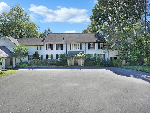 Exquisite private country estate set on 23.45 acres close to town. The classic pre-war Georgian Colonial has 7 bedrooms and is sited at the end of a quiet cul-de-sac. A special opportunity offered for the first time in 60 years. The beamed living room with fireplace is step down, the richly paneled library with fireplace has a charming wet bar, and the formal dining room with fireplace is generously proportioned. Elegant curved staircase. Handsome wide plank floors grace most rooms. The property is exceptionally private and quiet with gorgeous trees and open lawn. Terrace, heated pool and tennis court site. Four car garage, generator, attached greenhouse. Truly one of kind!
