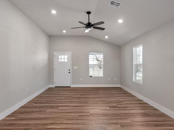 Explore contemporary living in this brand-new home featuring an open floor plan with stylish plank flooring in the living areas and cozy carpeting in the bedrooms. Boasting 1362 square feet, this home has a split floor plan with 3 bedrooms and 2 bathrooms. The kitchen showcases a larger island and pantry, complemented by LED recessed lighting and inviting vaulted ceilings throughout. Enjoy leisurely moments on the covered back patio. This quality-built home, complete with a 2-car garage, is a must-see for those seeking a new standard of living. Note: Exterior to be completed as weather permits.