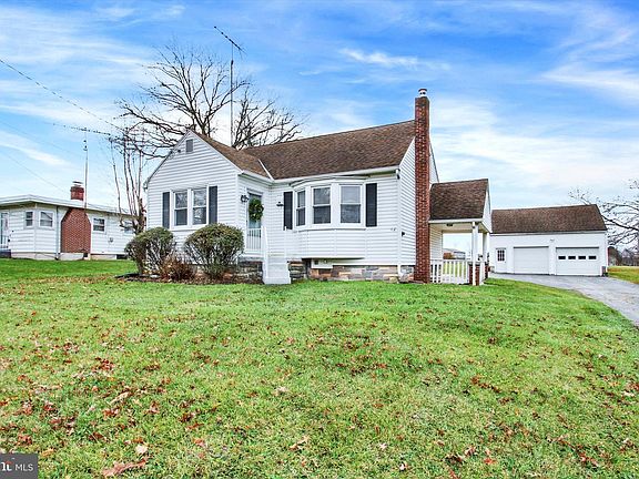 Charming and cared for 1271 Sq. Ft cape cod style home situated on .42 acres in the heart of Bonneauville! The property has a Gettysburg address but is in Littlestown School District and Bonneauville Boro. The property features an expansive partially fenced rear yard backing up to the park and a 2 story 2 car oversized 26 X 25 garage (has electric but no water/chimney not in use and conveys as-is). The left garage door is new, the right garage space has an electric opener and could potentially (if ramped) become a drive through, the second story offers a huge amount of storage space, the 15 x 10 rear room is perfect for use as a garden shed and the front main section of the garage provides enough space for a workshop. The first floor offers living room (wood flooring/Mini-split), kitchen (new vinyl flooring/built-in corner cabinet/ceiling fan), bedroom 1 (wood flooring/Mini-split), full hall bathroom (vinyl flooring/tub-shower combo), bedroom 2 (wood flooring/radiator) and has 7.5 Ft ceiling height. The second floor is bedroom 3 (wood flooring/Mini-split/closets/attic storage under dormer & eaves/ 6.8 ft ceiling height). The basement is unfinished but offers fully functional shower/toilet/sink, laundry hook ups, dehumidifier, canning/oil tank room, panel & fuse boxes, Mini-split, oil boiler (new stainless liner installed by clean sweep chimney service in March 2022). The average electric from previous 12 months was $200 p/month and the monthly water/sewer charge is $95 p/month.... all utility charges will be based on occupants’ usage. There is no ability to hook up to natural gas on this road.