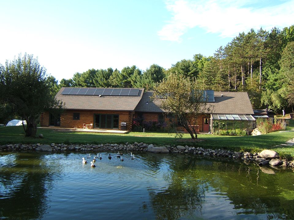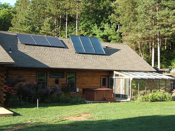Log home Active and passive solar power, Green River runs through property, 3 ponds, 4 greenhouses, 4 outbuildings plus guest tiny house. Garage and shop is 1600 SF --Heat-Radiant floor heat using hot water throughout house and shop with poured concrete floor Outdoor wood boiler (Heatsource 1) with electric hot water back up and 160 gallon tank 3 solar hot water panels adequately supply hot water in warmer months. --Insulation-R50 above house, garage and shop are insulated --Power- 5 kw PV panels, 8 kw propane generator, captured mountain spring fed stream could easily power hydro electric for off-grid living --Interior features- marble countertops, gas stove, oak flooring in open living area --Exterior features- Approx. 5 acres cleared, sloping and flat, 5 acres wooded front and back decks 2 driveways 3 car parking area Established farmstand, apple, asian pear, quince trees, raspberries, multipe garden areas --Utilities- well, sewer --Market area Great Barrington, MA 20 min Albany 45 min NYC and Boston 2.5 hours 3 ski areas within 30 min Chatham School District 1/5 mile to Rte 22 5 miles to I-90