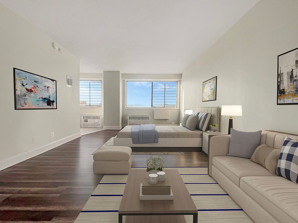 Welcome to this renovated Doorman studio in Mount Vernon! This apartment boasts a spacious living area with beautiful hardwood floors, offering plenty of room for a queen-sized bed, a sofa, and a separate dining or office space. The kitchen features stainless steel appliances, and you'll find an abundance of closet space and natural light throughout. The building provides a range of amenities, including a doorman, live-in super, an elevator, and a laundry room. Go outside to enjoy the common outdoor space, walking track, and tennis courts. With a prime location just two blocks from the Metro North train station, you're also surrounded by plenty of shopping and dining options. Heat, water, and gas is included. Tenant pays electricity.
