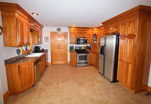 Custom built ranch with superb finish details and oversized rooms. Kitchen is custom cherry cabinets and SS appliances. Trim work is all natural finish pine done with great imagination and startling quality. Beautiful hardwoods in living room and hall, top quality tile in kitchen and baths, wall to wall in the bedrooms. Master suite has spacious closets and master bath with Jacuzzi tub and large shower. 50 foot front porch and a 10 x 20 rear deck. Desirable level yard with raised bed gardens, beautiful stone walls and a great fire pit. Garage has walk up storage area above. Basement has large windows and beautiful French doors to outside, partially finished. Top of the line Buderus heating system with 2 zones and plumbed for 2 more should you want to put a zone in basement or garage. Just a wonderful home in a great, convenient location.
