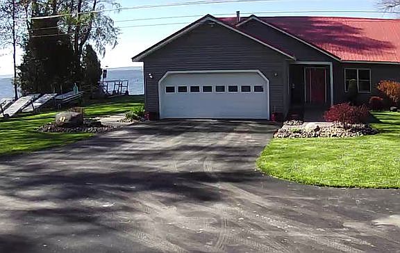 Stunning Lakefront Home With 96 feet of waterfront. Beautiful Southern Exposure Affording Awesome Sunrise And Sunset views, from Your Screened Porch, Greatroom And Main Bedroom. The Greatroom Features A Vaulted Ceiling And Beautiful Stone Gas Fireplace. Adjacent To The Greatroom Is The Amazing Kitchen With Top of The Line Amenities And Beautiful Cabinets. The Main Suite Is A Dream With Its Lake View, and ensuite featuring Soaker tub, grand Stand Up Shower & Double Sinks. Radiant Floor Heat. Central Air. Attached double garage and second detached double garage to store your toys. Beautiful landscaping and paved turn around drive away, Complete This One of A Kind Home!