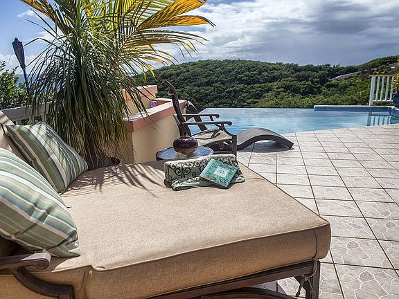 Inspired by the view of the palm lined beach below and Caribbean Sea, the owners have created the optimum 1,200 sq. foot outdoor living area with an infinity edge pool with open deck for sunning, hot tub and wet bar and a covered dining area that will comfortably accommodate 14 for a sit- down dinner. Inside the home, the design is refined island style featuring a top of the line kitchen and a spacious master bedroom with a 12 x 11 walk in closet/dressing room. The main living level has 2 bedrooms and 2 ½ baths and is accessed through a welcoming courtyard filled with orchids. Below are two additional, independent living areas, each 600 sq. ft. that can be used for guests, home office, or as an income apartment for maximum flexibility and maximum privacy. Pick your own lemons, limes, mangoes and pomegranate from the walled, yard below the house. Bonuses include a two car garage, 400 sq. foot workshop, 40 KW generator and ample parking (seven cars plus), This house checks all the boxes. Conjure an image of an island retreat and you see yourself here lounging poolside with a view of a palm lined white sand beach, cooled by gentle breezes with a platter of tropical fruit from your own garden. For a complete sense of the house, watch the virtual tour provided.