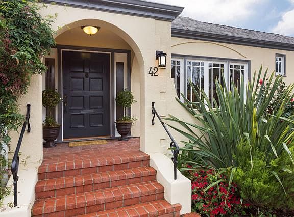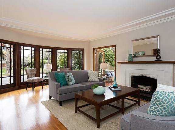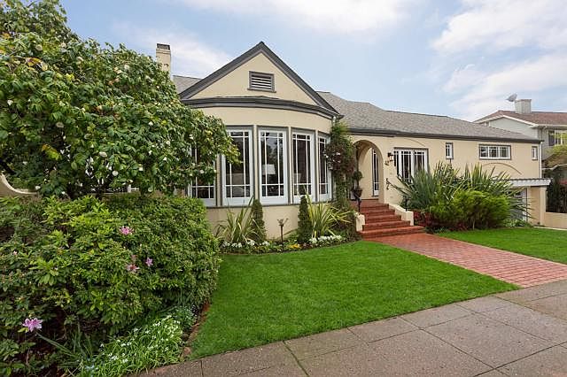 Visit 42Estrella.com. On a picturesque tree-lined street is this impeccably updated four bedroom Traditional near the center of town. Grand proportions bathed in natural light give way to lovingly manicured gardens that envelop the property. The seamless integration of contemporary amenities with the timeless elegance of French windows, intricate coved ceilings and impressive archways offers drama, comfort and function for daily living and elegant entertaining. Just past the front lawn and brick porch is a welcoming central foyer that reveals the light filled formal spaces. To the left is a grand living room centered with a tile fireplace, a bow window along the front and French doors opening to the private brick patio, level side lawn and romantic pergola draped with wysteria. To the right is the formal dining room with built-in china cabinet architecturally nestled under an elegant archway. The heart of the home is the eat-in kitchen featuring cherry cabinets, quartz countertops, quality stainless steel appliances, counter seating and double French doors to a cozy terrace overlooking the rear patio and gardens. While cooking, keep an eye on playtime, interact with your guests or simply relax in the adjoining family room with its built-in entertainment center and window seat. The main floor boasts a bedroom suite, perfect for guests and grandparents, and an office with built-in bookcases and French doors opening to the private brick porch. Upstairs you will find two sunny bedrooms, an updated bath, the laundry facilities and a master suite with soaring ceilings, a wall of closets and a newly renovated bath complete with a modern freestanding soaking tub. When the weather warms, head outdoors to harvest apples for a seasonal pie or citrus for a lemonade stand, play ball on the level lawn, entertain on the brick patios or dine under the stars. There is a two-car attached garage with interior access convenient to the kitchen and a spacious basement with natural light and seemingly endless storage for all your treasures. Enjoy being close to Piedmont Avenue and Montclair shops and restaurants and just a few blocks to top public schools, parks, recreational facilities and public transit.