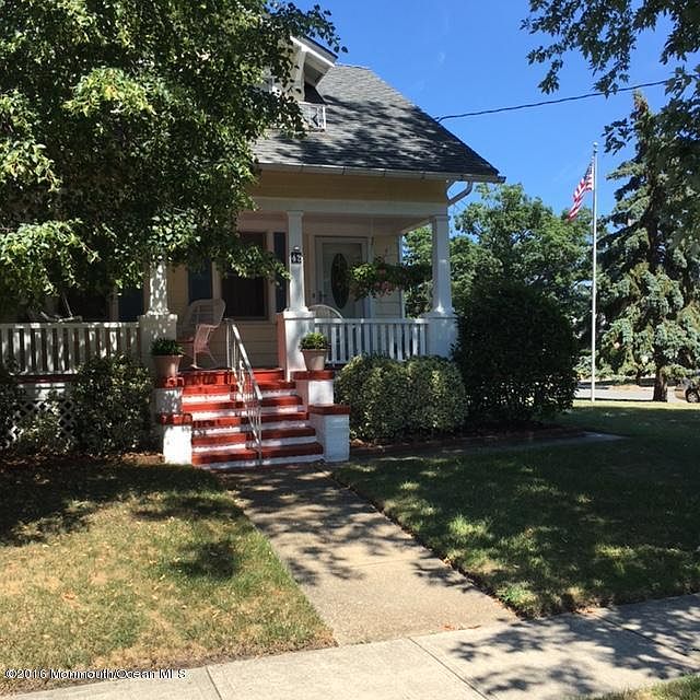 Don't miss this very well built and cared for home on a 100x100 corner lot. Great open front porch, 1st floor LR, DR with bow window/window seat, Kitchen with lovely cabinets and 1st floor bedroom/den/office. 2nd floor has 2 bedrooms with full bath washer/dryer.Finished basement provides cozy additional living space. Neighborhood shows pride of ownership. Location is a straight shot to the beautiful ocean at Bradley Beach just under 1 mile.