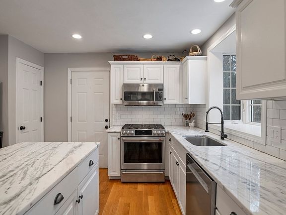 - Features: Flooring - Hardwood, Countertops - Upgraded, Kitchen Island, Cabinets - Upgraded, Recessed Lighting, Remodeled, Slider, Stainless Steel Appliances, Gas Stove