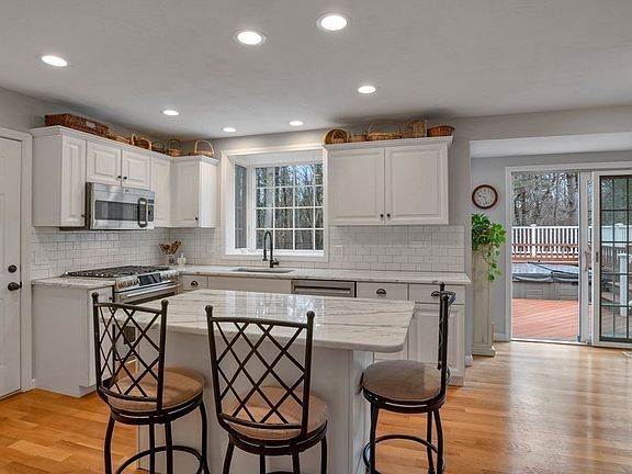 Unrivaled 4 bedroom 3 bath Colonial situated on a private cul-de-sac in the heart of Hampden. As you enter the home through the 2 car oversized attached garage you will immediately be greeted by your gorgeous fully remodeled kitchen equipped with newer stainless steel appliances, white shaker cabinets, quartz countertops & breakfast island. Brand new hardwood flooring throughout! The grand family room is perfect for entertaining guests or curling up by the gas fireplace with a good book. Your massive private primary bedroom is nestled on the upper level which features his and hers walk in closets and master bath. As you walk down the hall you will notice a strategically placed hidden washer and dryer, as well as three other very spacious bedrooms and another full bath. The backdoor slider leads out to a huge double decker trex deck and beautifully park like fully fenced in backyard. Brand New roof and HVAC system in 2022! Too many features to list! True Turnkey! It will not last!!