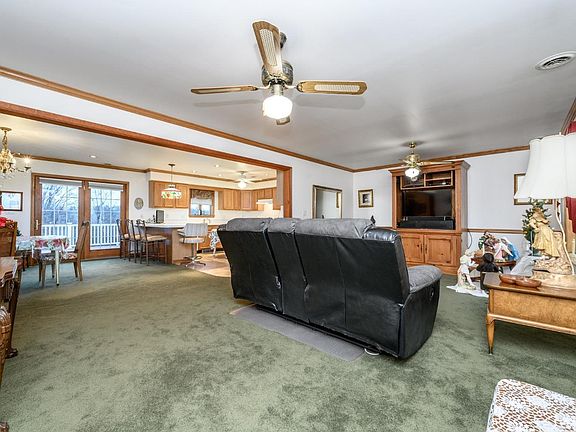 Lovely 3 Bed 2.5 Bath Ranch with Walk-Out Basement, 2 Car Garage and Primary Suite could be the one for you! Set back from the road on 2+ sprawling acres in a serene country setting, perfect for those looking for extra space and privacy. Charming covered rocking chair front porch and Foyer entry give way to an accessible open layout for seamless living and entertaining. Spacious Living rm features decorative wood molding and large windows that let in plenty of natural light. Open Dining area has recessed lighting and dual French Doors opening to the rear Deck, overlooking peaceful nature views. Country Eat-in-Kitchen offers ample cabinet storage, recessed lighting and delightful breakfast bar. Convenient Laundry closet and guest 1/2 Bath, too! Down the hall, the main Full Bath + 3 generously sized Bedrooms with HW flooring, inc the Master Suite. MBR boasts it's own updated ensuite bath with accessible stall shower. Walk-Out Basement is an added bonus, complete with Rec Rm, large storage area and workshop space. Large Deck overlooks the sprawling, private outdoor area, with plenty of extra space to build, garden, play, etc! 2 Car Garage with automatic door opener, ample parking,Central Vacuum, the list goes on! Don't wait! Come & see TODAY!