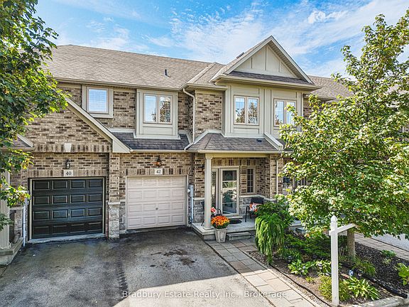 Welcome to this bright and impeccably maintained 2-storey townhome offering 3 bedrooms, 2.5 baths, and 1774 sq ft of living space in one of Binbrook's most sought-after complexes. What sets this home apart is the private, landscaped backyard retreat. The 20 x 124 lot has been transformed into an outdoor oasis with a two-tier poured concrete patio, a charming garden shed, and lush perennial gardens - the perfect backdrop for summer entertaining, morning coffee, or quiet evenings at home. Inside, the main floor features a corner gas fireplace, gleaming hardwood floors, 9 ft ceilings, a bright open layout, and sliding doors that open directly to the backyard for seamless indoor-outdoor living. The kitchen and dining areas are spacious and inviting, with timeless finishes that will suit a variety of styles. Upstairs, you'll find a huge primary suite with a walk-in closet and ensuite bath, plus the convenience of second-floor laundry. Two additional bedrooms offer plenty of space for guests, hobbies, or a home office. The unspoiled basement, with high ceilings and an open layout, provides endless potential - create a rec room, gym, or media room to suit your lifestyle. Close to parks, schools, restaurants, and shopping, and offering a meticulously cared-for interior paired with a truly standout backyard, this home is ideal for downsizers and anyone who values space, comfort, and outdoor living.