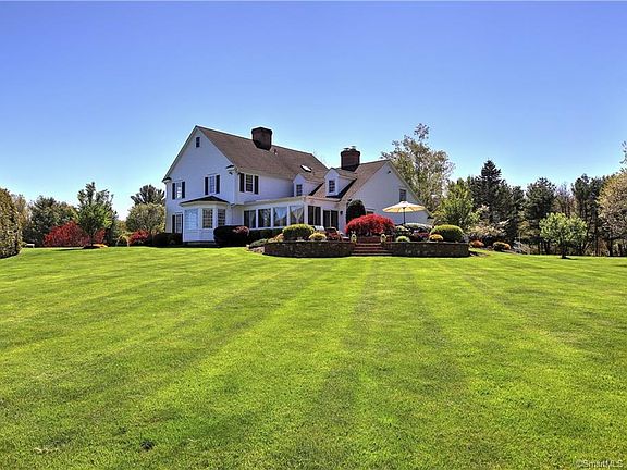 A truly stunning home on park-like grounds with sweeping views of the 5th fairway. Prime location, beautiful land, character, design & pristine condition a uniquely perfect opportunity. Farmstead Ln is a sought after private road w/in the Tashua school district. Curb appeal! Sitting perfectly above the street and leveling off to a fully usable & breathtaking backyard. As you enter the home from either the main entrance or convenient side entrance - you will quickly note the architectural features are far superior! The windows & French doors add a level of elegance that set this home apart from the rest. Whether it is the expansive bay window in the breakfast nook, beveled French glass doors leading to the sun room or the large 16 over 16 windows letting in tons of natural light you will see the difference. A unforgettable space at 42 Farmstead Ln is the two story family room with a loft above. Both rooms boasting a oversize fireplace focal point. 4 good sized bedrooms on the 2nd level & a recently updated master bath w/ floor to ceiling glass steam shower, soaking tub luxurious spa like feel! Features/Updates: Newer Lennox 3-zone C/A, newer hot water tank, irrigation, landscape lighting, nat. gas, high-end kitchen appliances. Whether you are cozying up by the fire in the winter, enjoying a glass of wine on the back patio in the summer, or reading a good book with a springtime breeze in the sunroom 42 Farmstead Ln is the perfect home for all seasons!